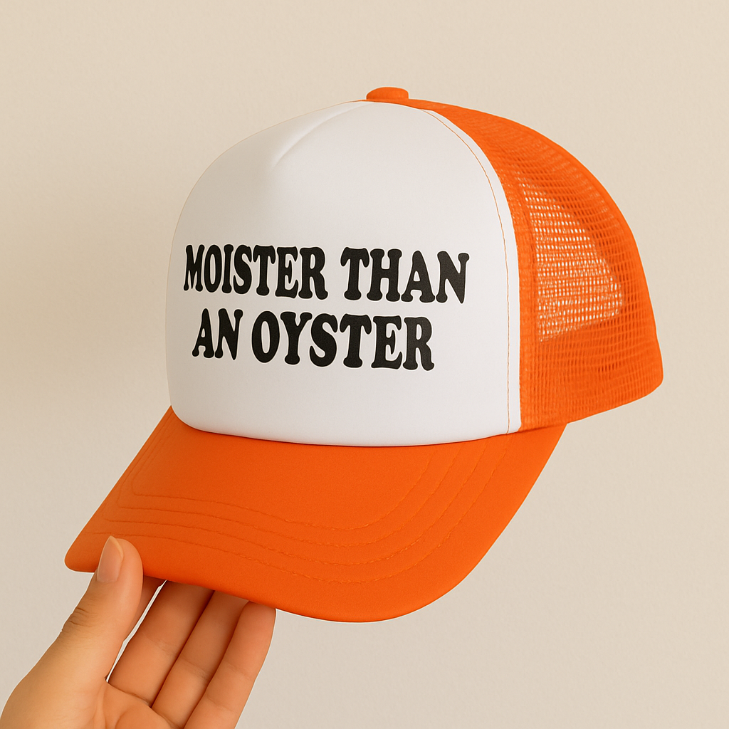 Moister Than an Oyster – Funny Orange Trucker Hat