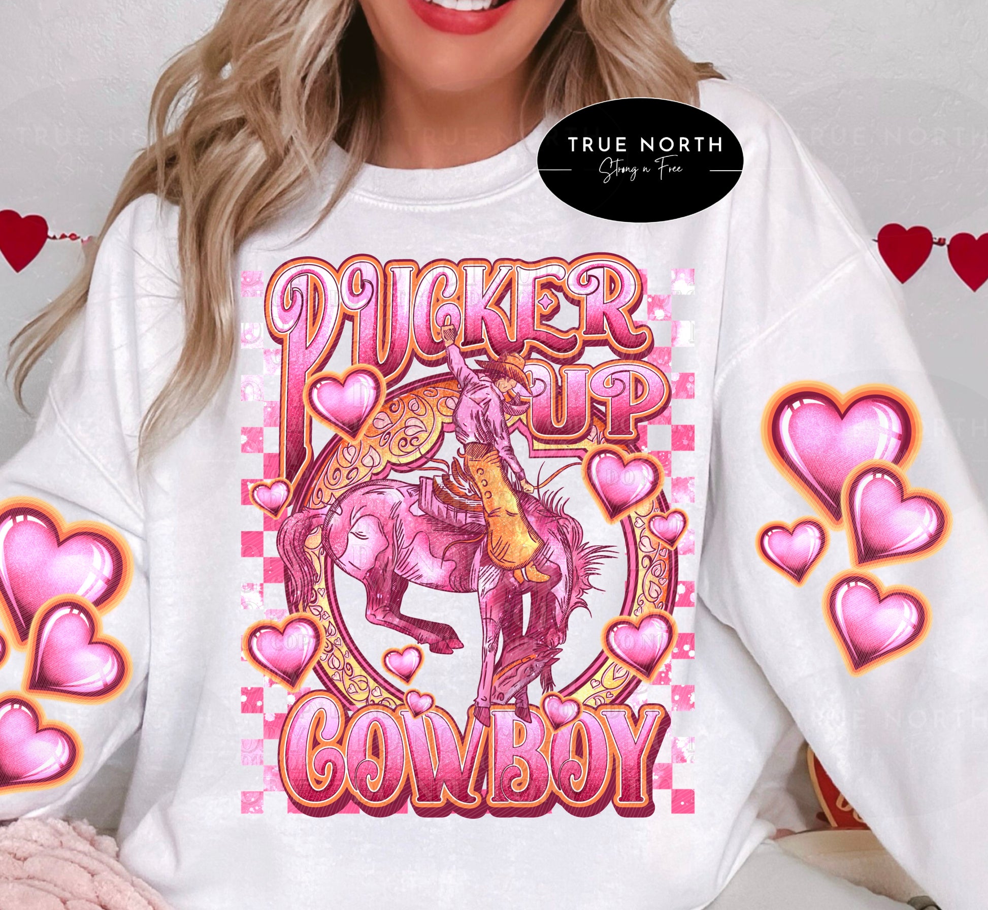 DTF Transfer Valentines Pucker Up Cowboy Sleeve offered