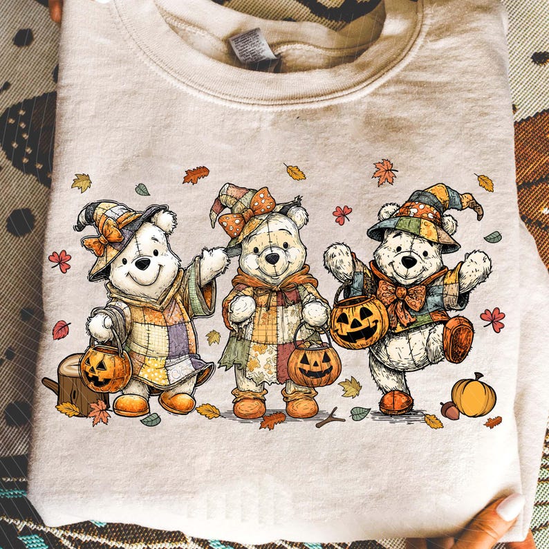 Crewneck Hoody Fall Halloween Patchwork Bears Pumpkin Design