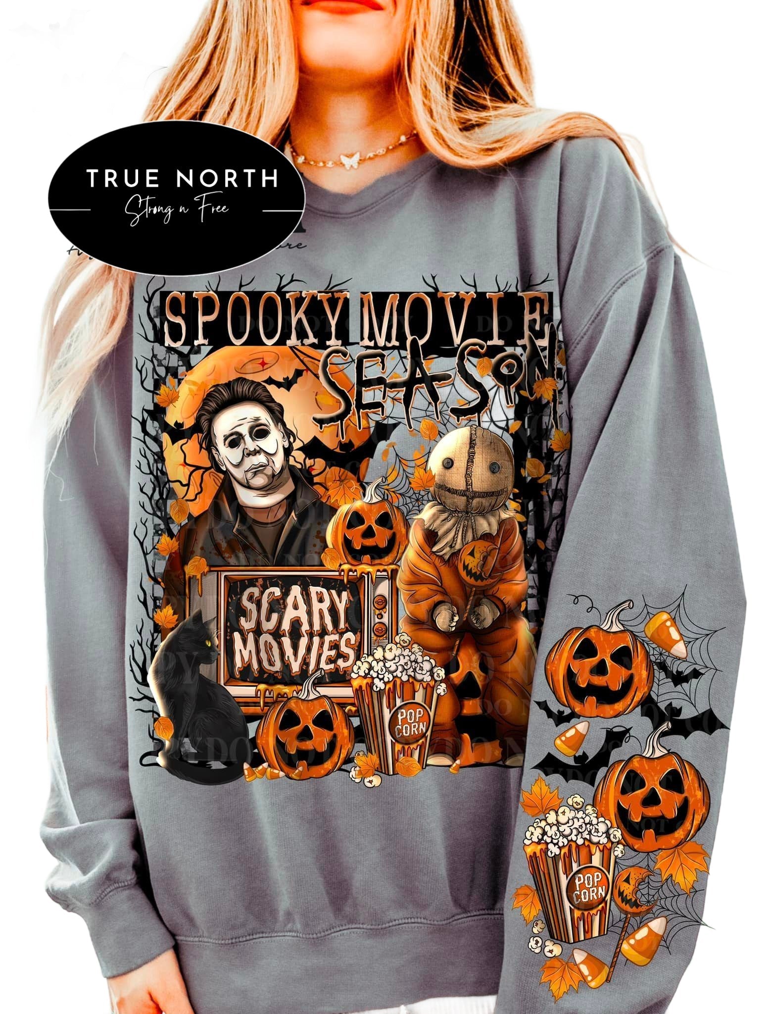 Crewneck T-Shirt Halloween – Spooky Movie Season with Pumpkins, Popcorn & Horror Icons Hoody Or Sweatshirt