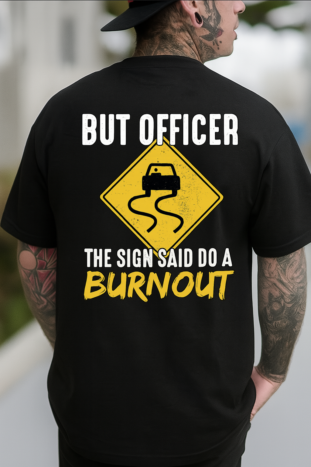 DTF Transfer But Officer Burnout – Funny Car Sign Parody Print