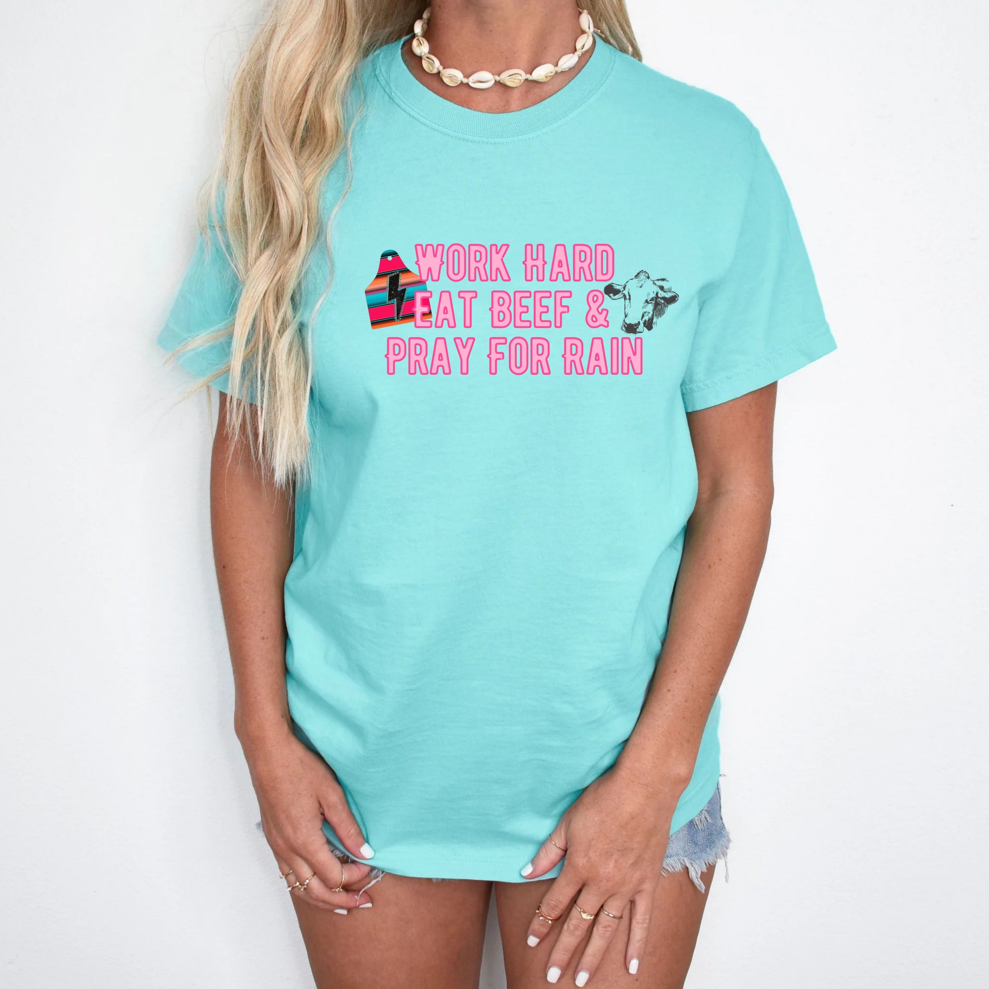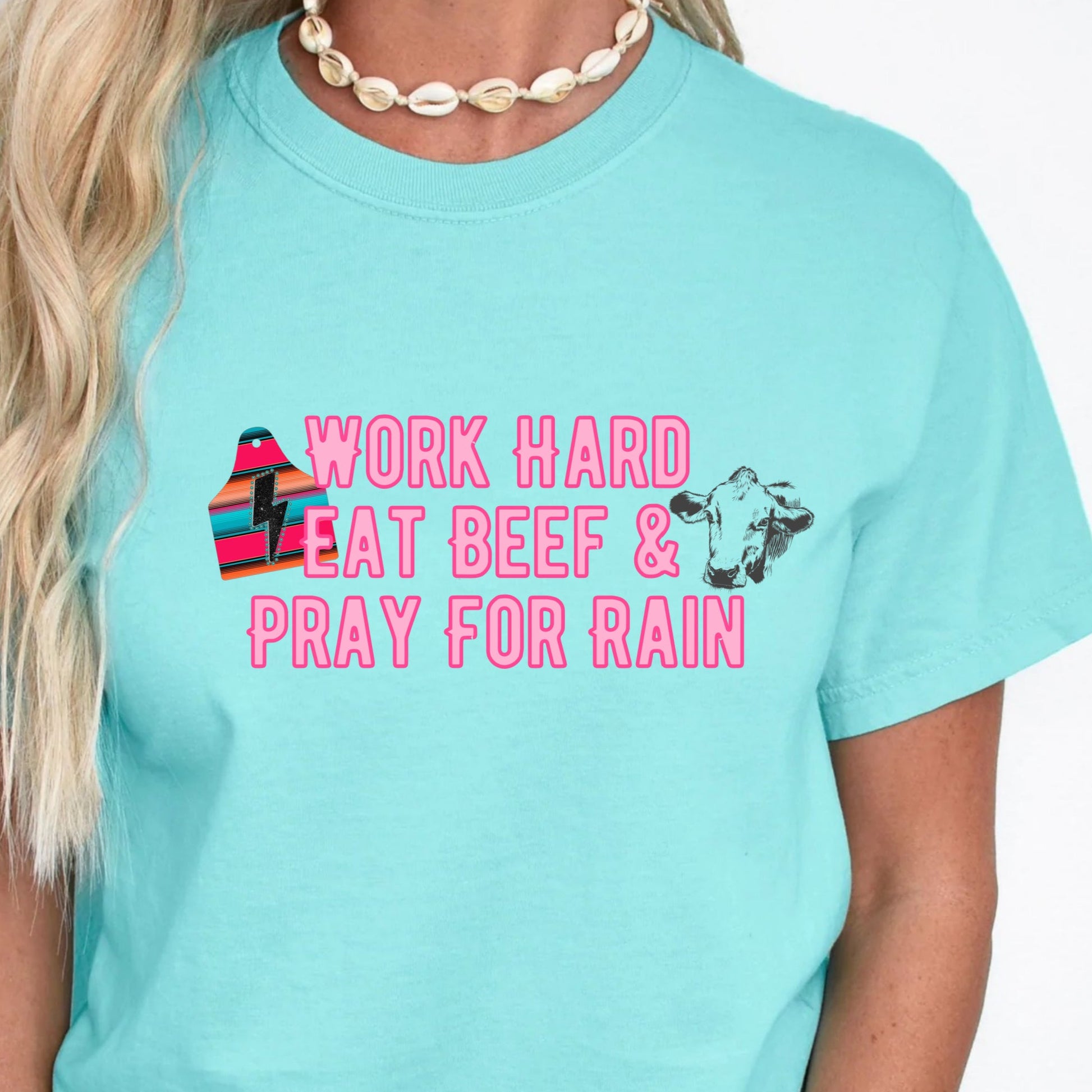 DTF Transfer Western Quote – Work Hard Eat Beef & Pray for Rain