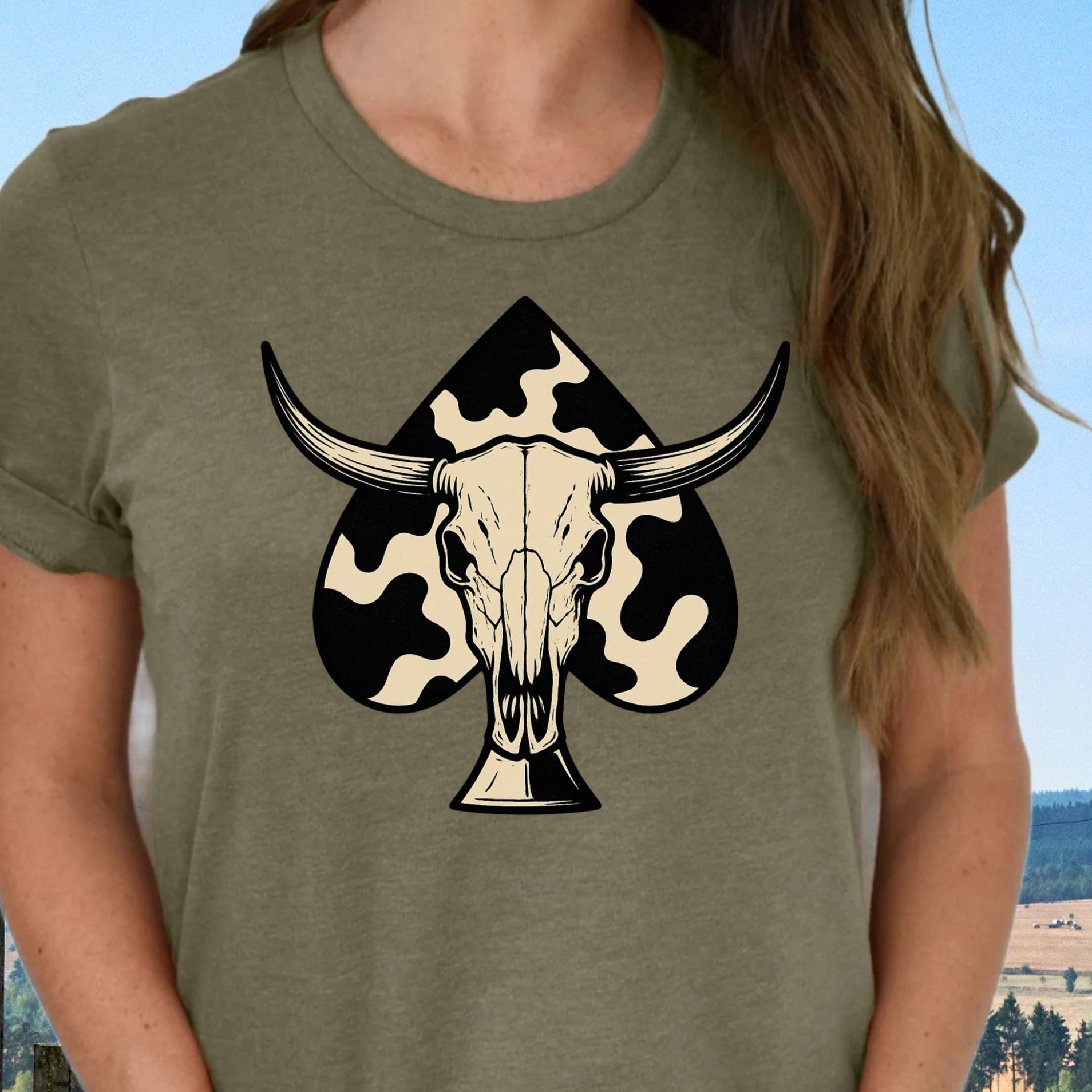 DTF Transfer Western Spade Skull – Cow Print Bull Head Country Graphic