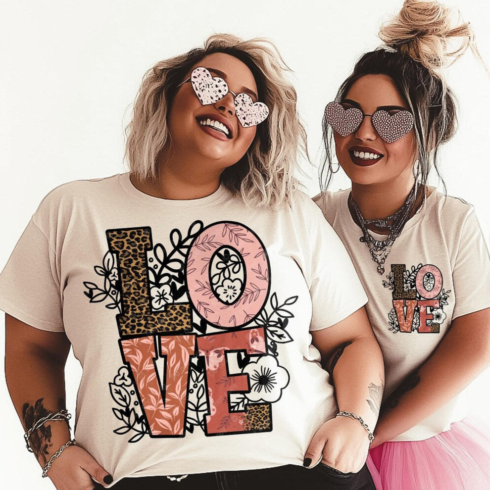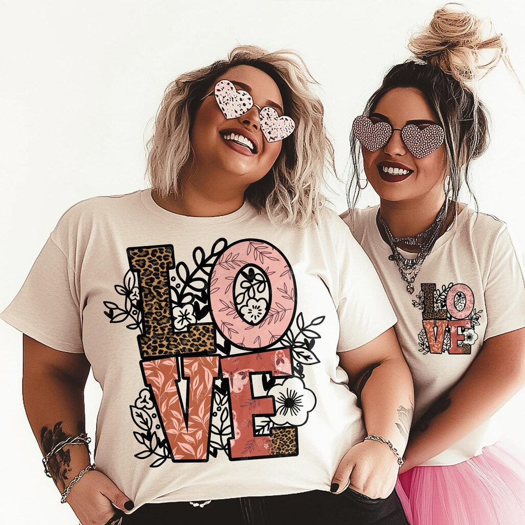 DTF Transfer Valentines - LOVE Floral Leopard Design