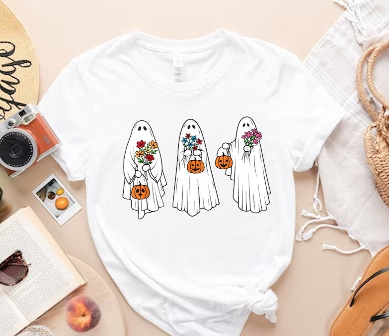 DTF Transfer Fall Theme Ghost With Pumpkins
