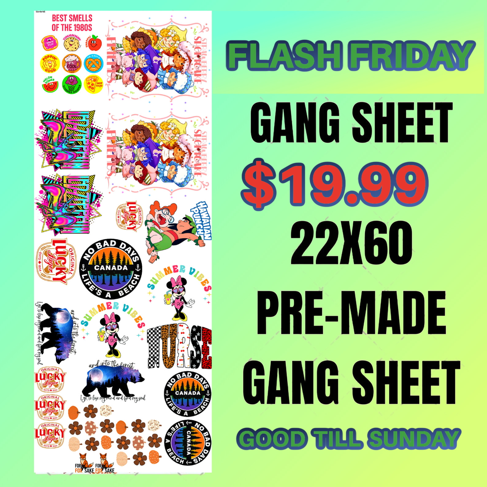 DTF Transfer Flash Friday – Pre-Made Gang Sheet 22x60 – $19.99 – Limited Time Only!