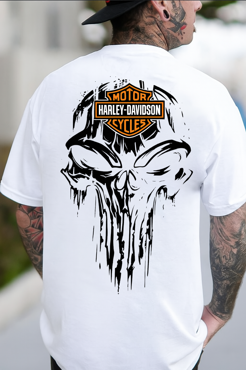 DTF Transfer Punisher Skull – Grunge Motorcycle Parody Print