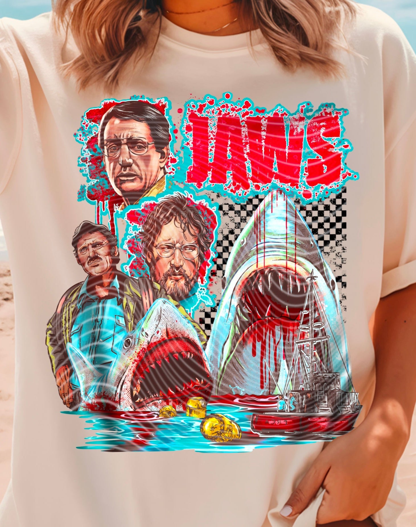 DTF Transfer JAW.S Retro Horror Shark Attack – 80s Neon Beach Graphic #2