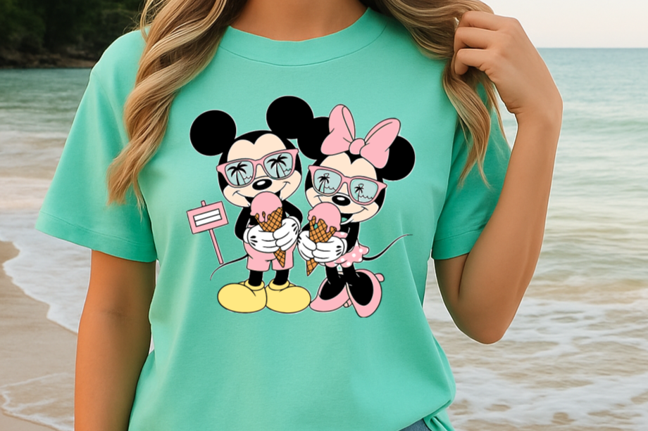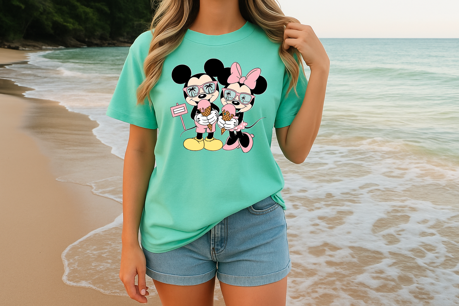DTF Transfer – Cute Cartoon Couple with Ice Cream on Vacation