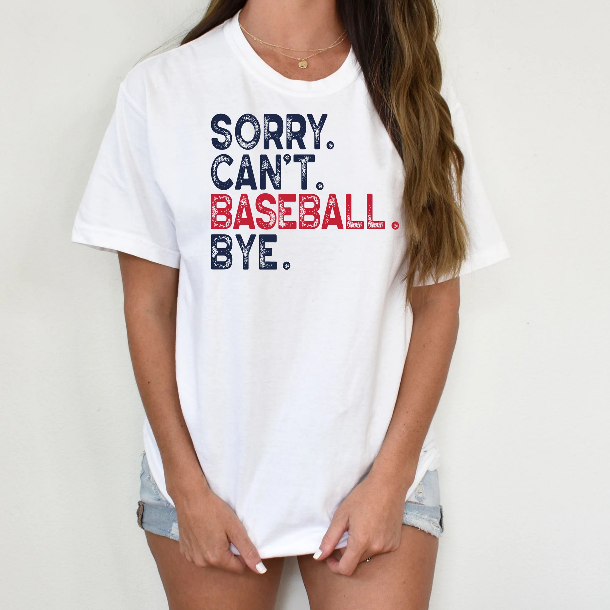 DTF Transfer Sorry Can’t Baseball Bye – Red White Blue Distressed Text Graphic