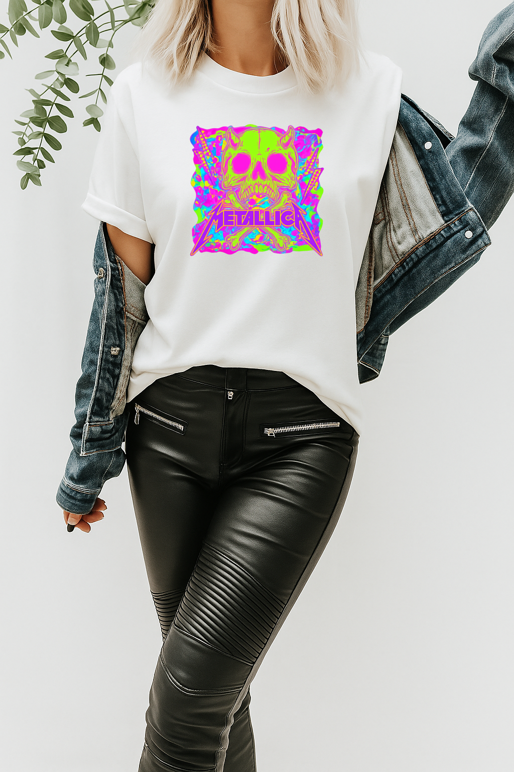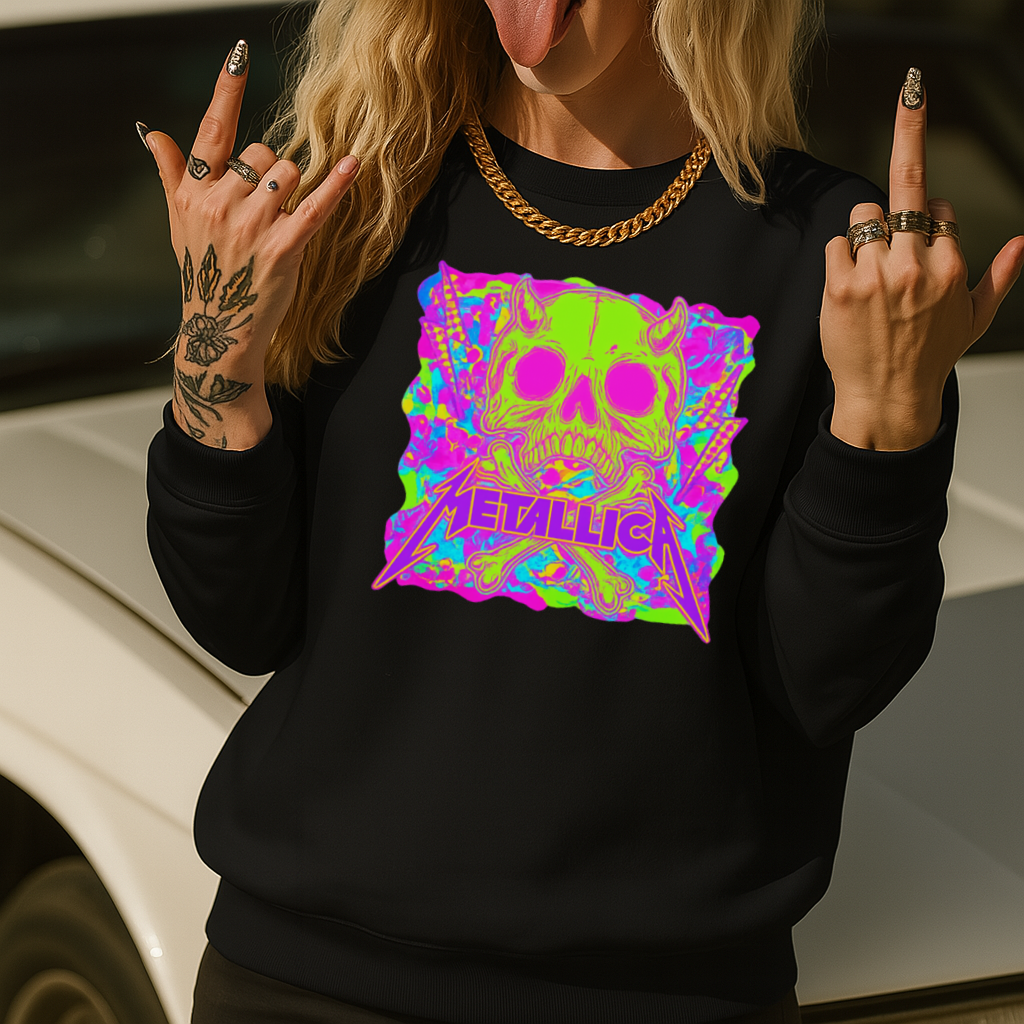 DTF Transfer Skull Rock Vibes – Neon Metallicaa-Inspired Punk Graphic