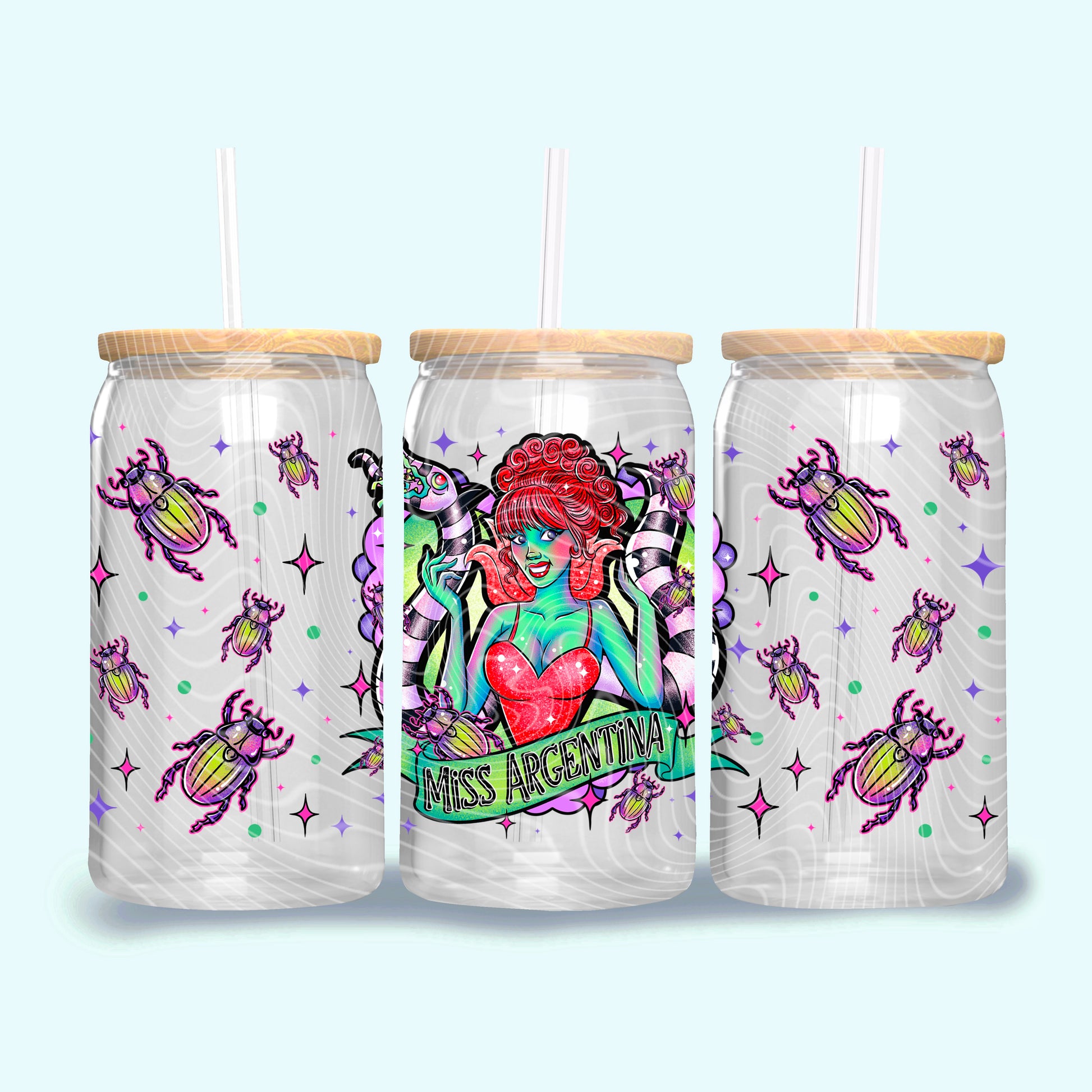 DTF Transfer UV Cup Wrap – Miss Argentina Beetle juice Tribute Design