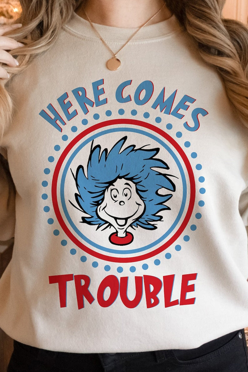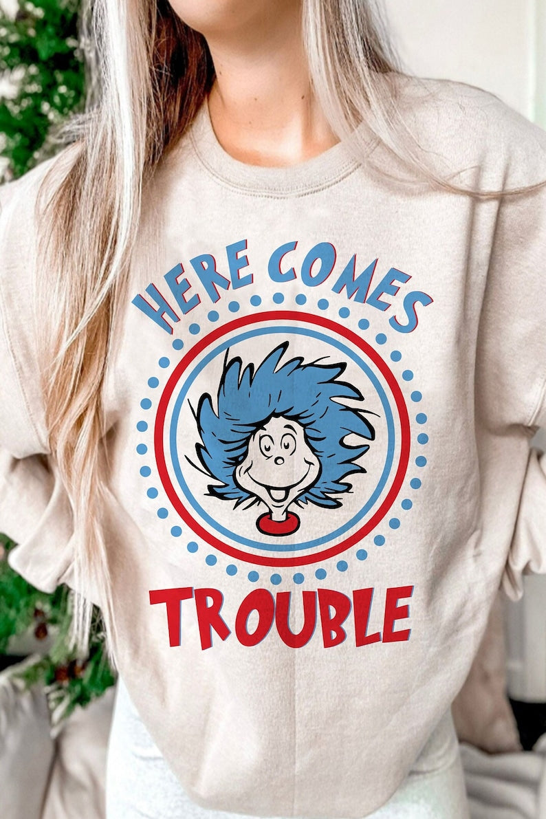 DTF Transfer Valentines Here Comes Trouble