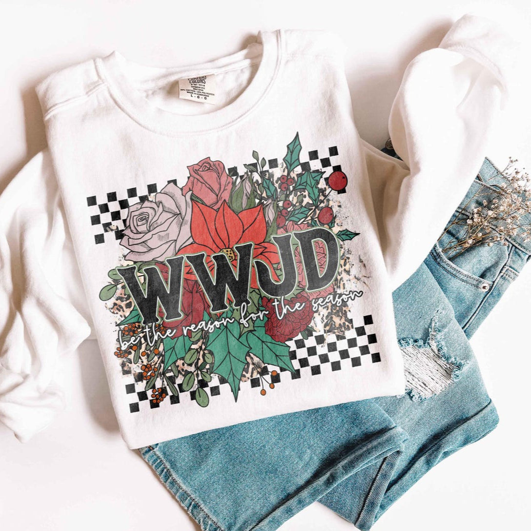 DTF Transfer Valentines - WWJD Floral Faith Christian Checkered Design