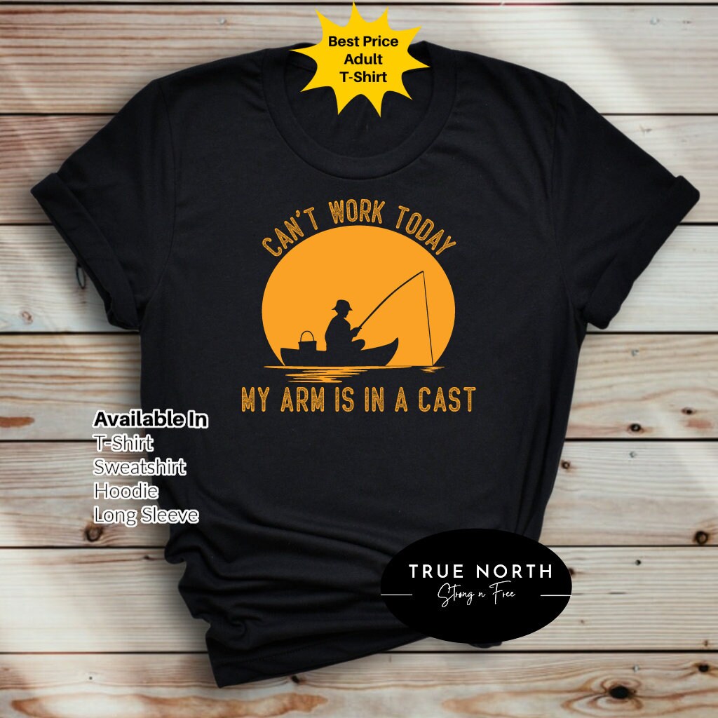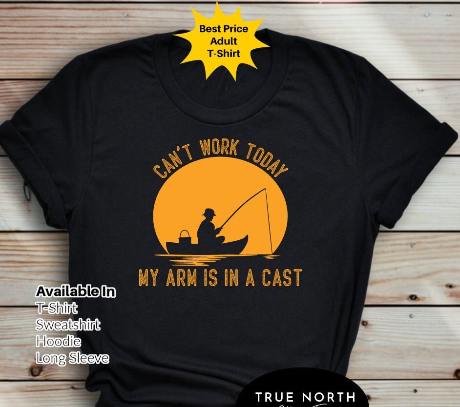 Mens Fishing T shirt, Funny Fishing Shirt, Fishing Graphic Tee, Fisherman Gifts, Present For fisherman, I Cant Work My Arm is in a Cast