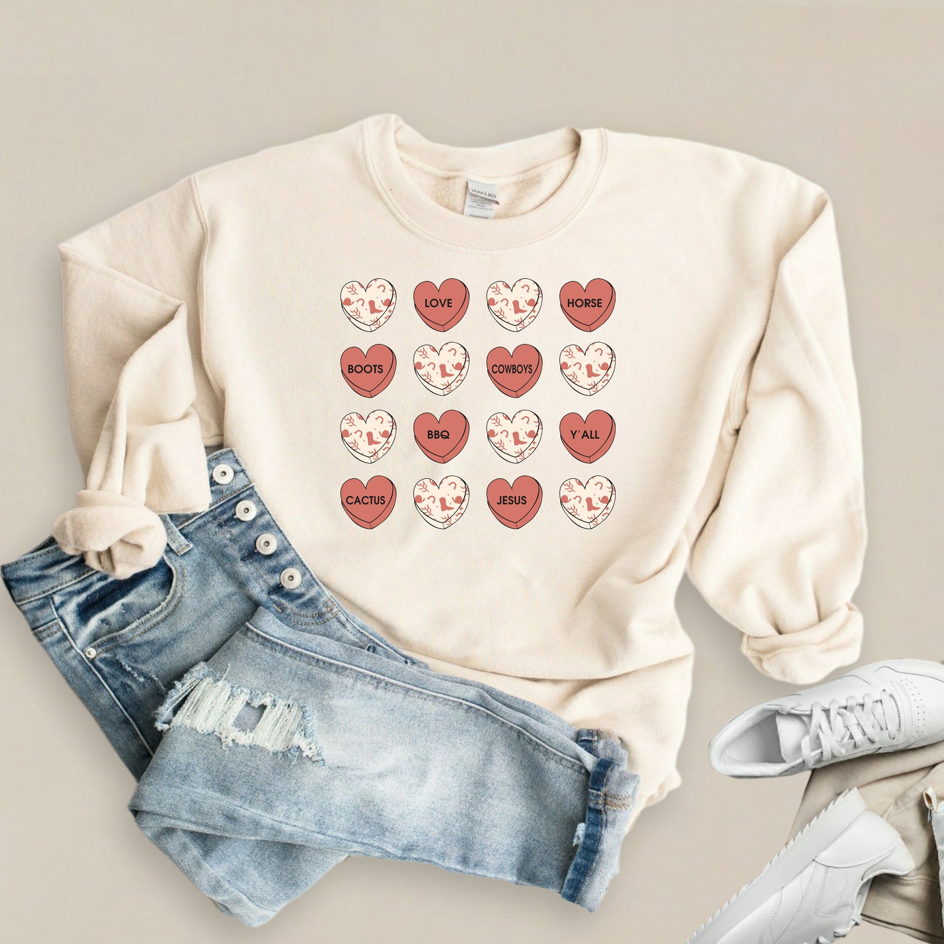 Never Stop Loving Cowboys Sweatshirt, Western Cowgirl Glam Valentine's Day Sweater, Girl's Night Vday Shirt, Country Rodeo Valentine .