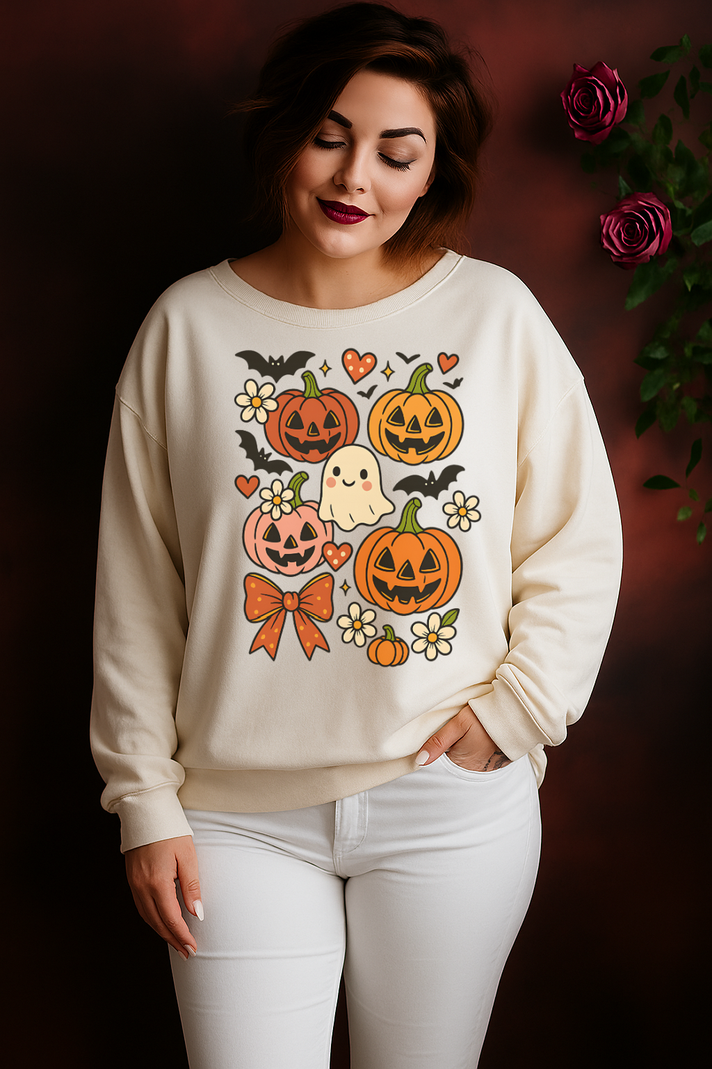 Sweatshirt - Hoodie Crewneck Pumpkin Patch Cutie – Pastel Halloween Ghost & Jack-o'-Lanterns