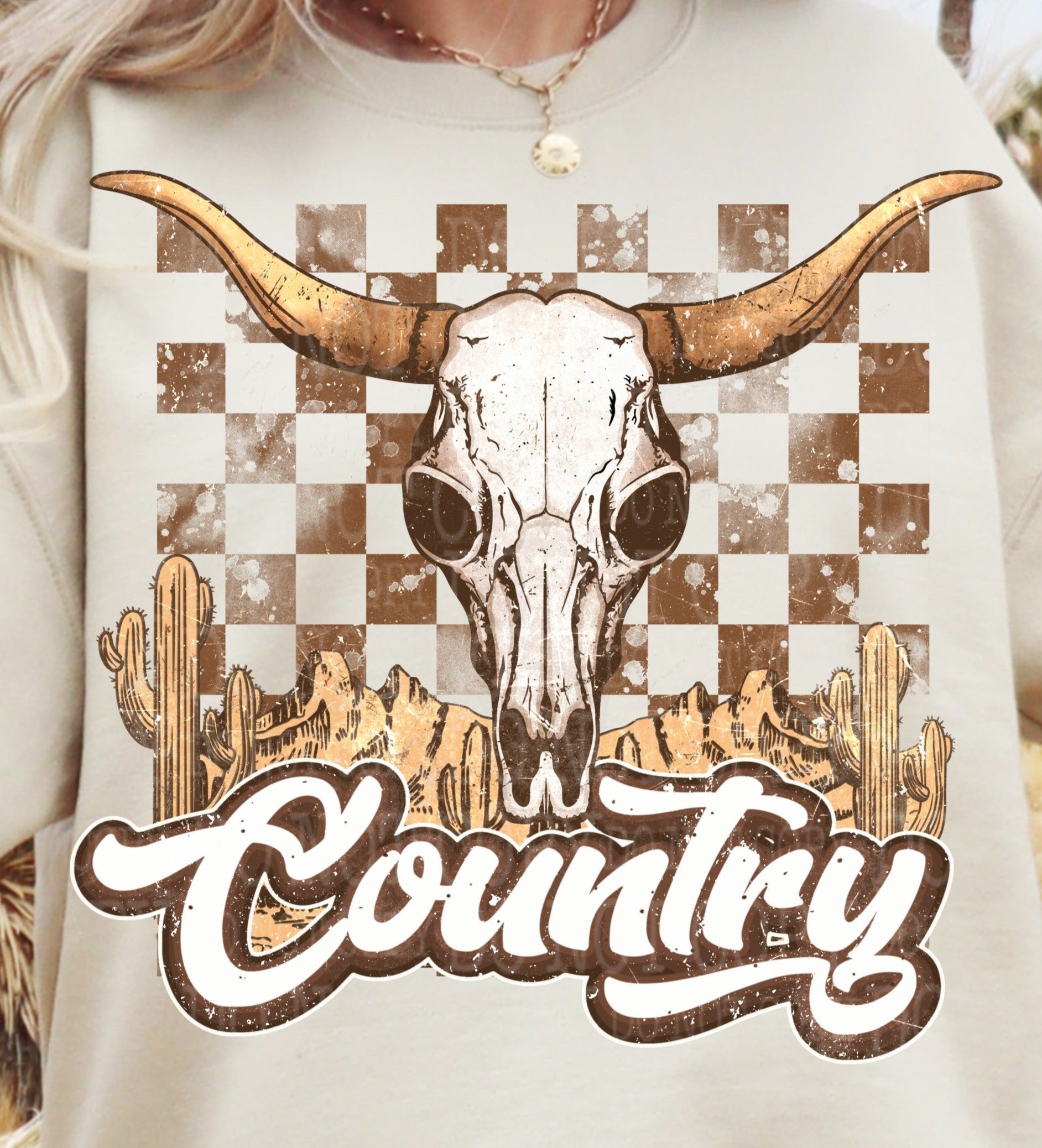 Sweatshirt Or T-Shirt Rustic Vintage - Country Bull Head .