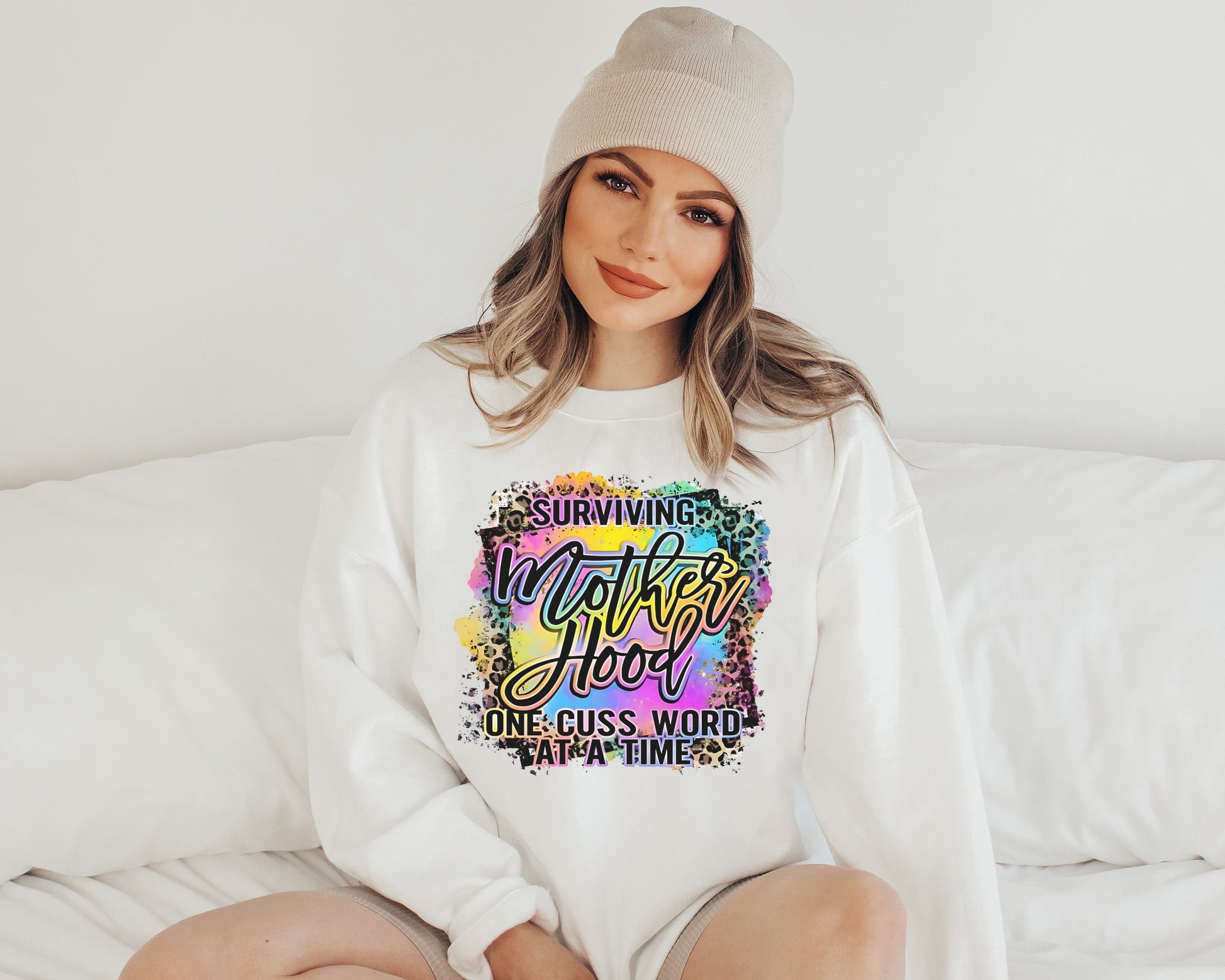 Sweatshirt T-Shirt Hoodie Mom Mama Surviving Motherhood one Cus word at time