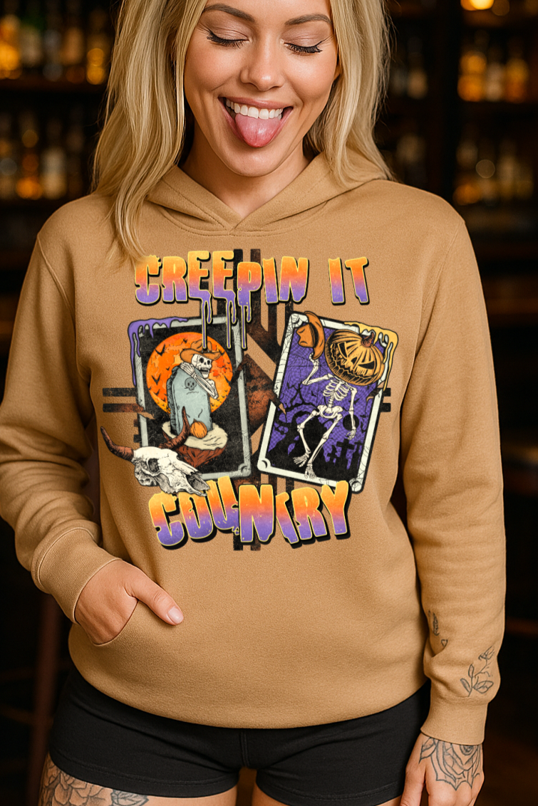 T- Shirt Crewneck Hoodie – Creepin’ It Country Western Halloween Design