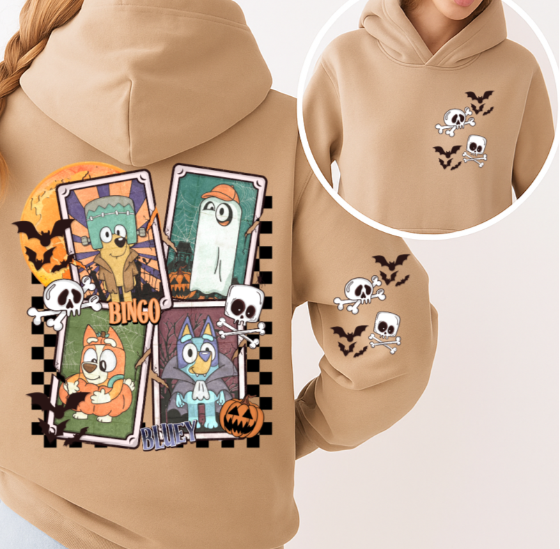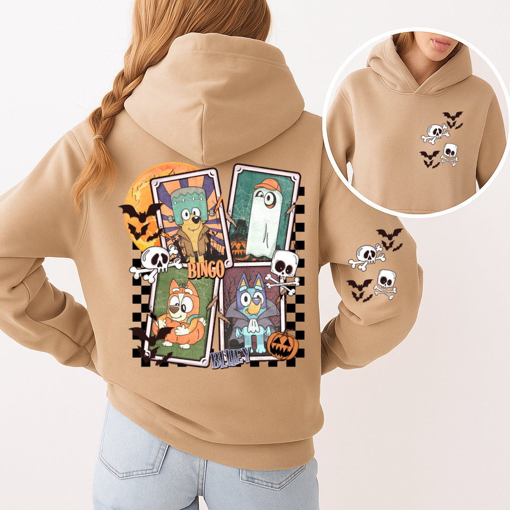 T- Shirt Crewneck Hoodie - Halloween Cartoon Character | Bingo & Blueey-Inspired Design