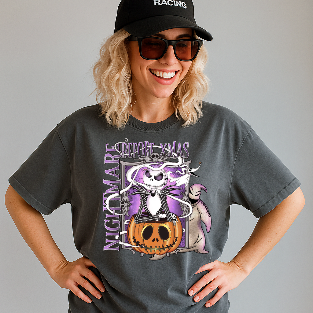 T- Shirt Crewneck Hoodie – Nightmare Before Xmas Purple Pumpkin Design