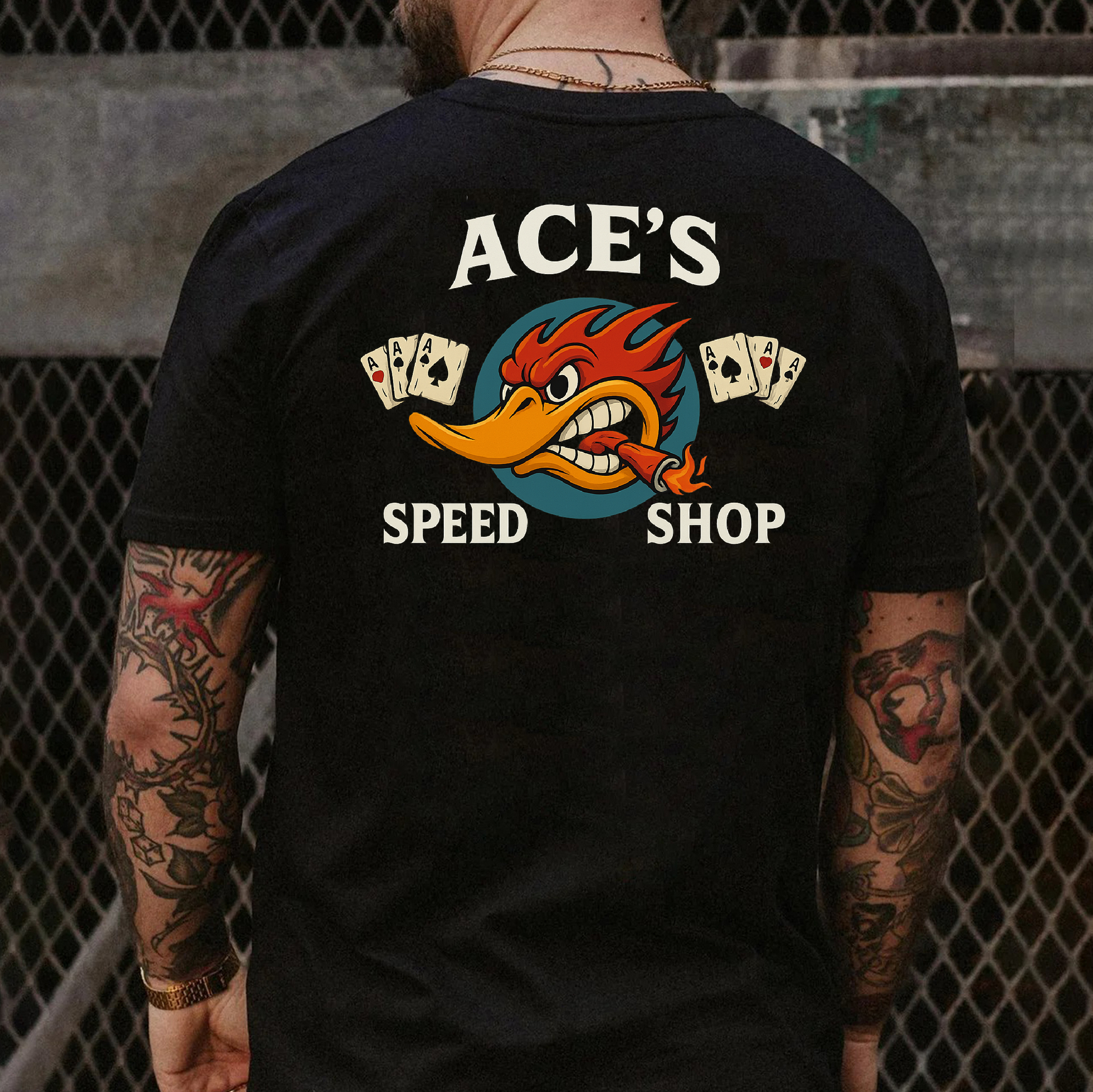 T-Shirt Crewneck Hoody – Ace’s Speed Shop Hot Rod Duck with Playing Cards