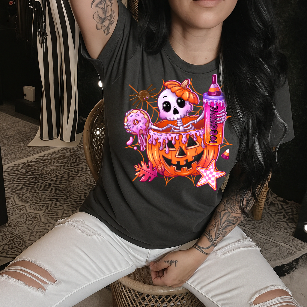 T-Shirt Hoody Crewneck Cute Halloween Ghost in Pumpkin with Whipped Cream & Stars