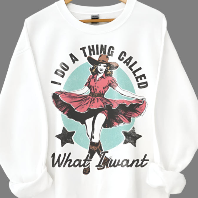 T-Shirt Or Crewneck I Do A Thing Called What I Want - Vintage Cowgirl Western