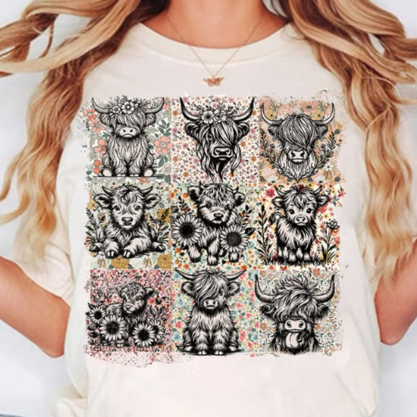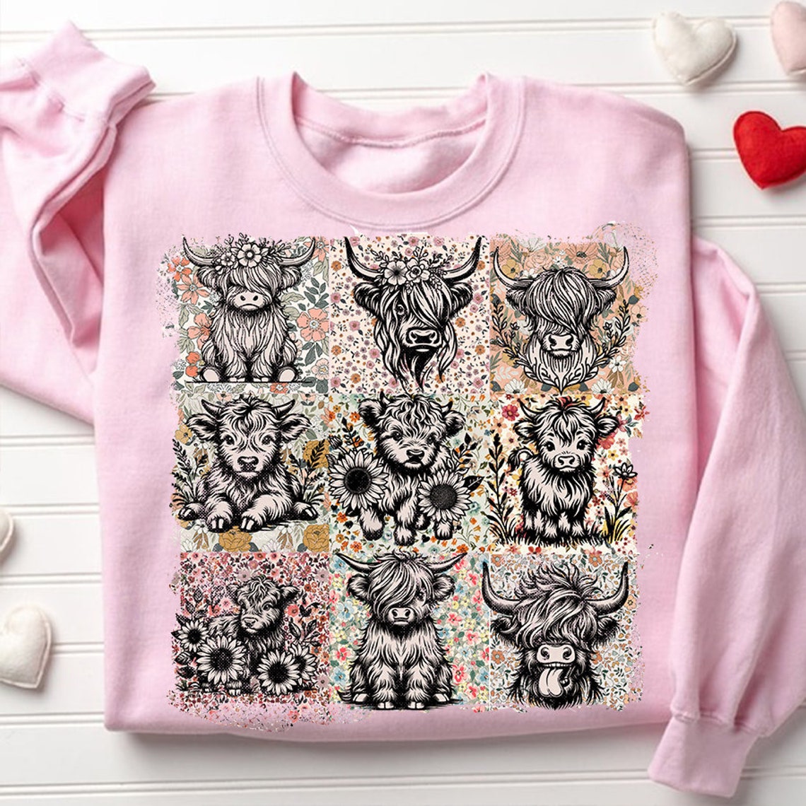 T-Shirt or Sweatshirt Country Vintage Style Cows Highland