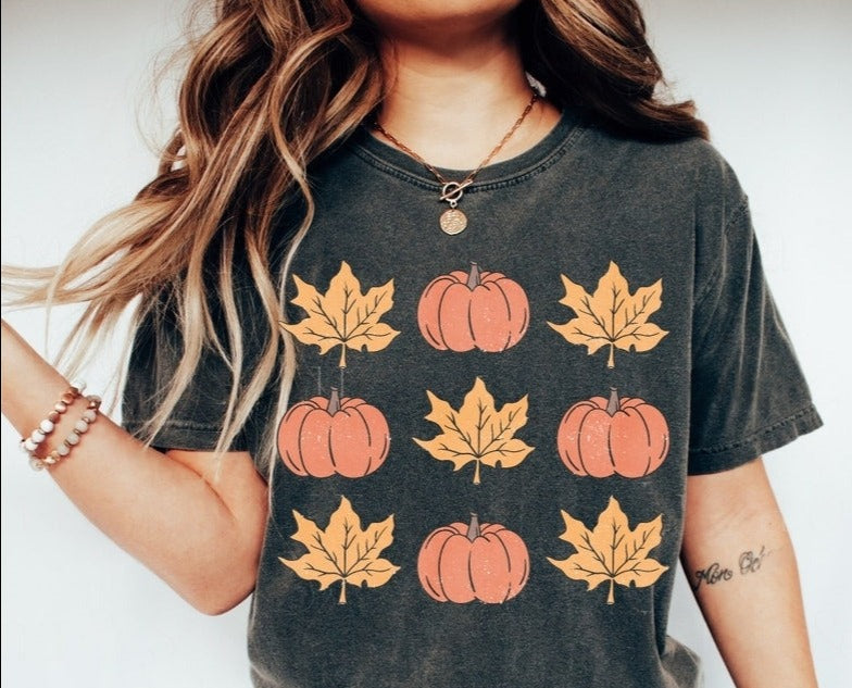 T-Shirt Or Sweatshirt Pumpkin and Leaves .