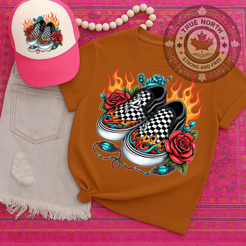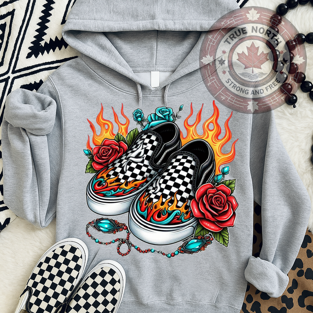 T-Shirt Sweatshirt Checkerboard Vans on Fire – Roses & Flames Sneaker Design