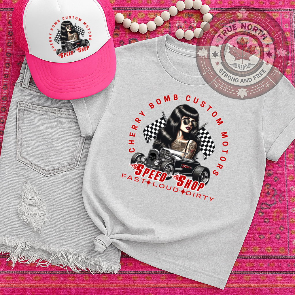T-Shirt Sweatshirt Cherry Bomb Custom Motors – Pin-Up Speed Shop Design