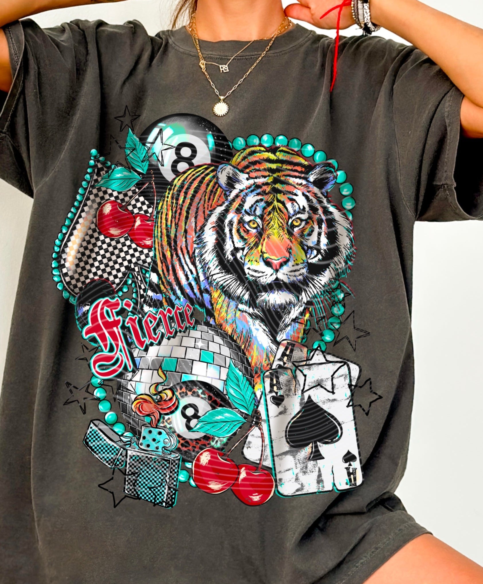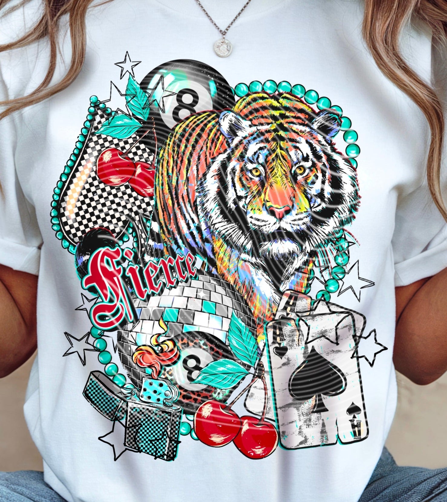 T-Shirt Sweatshirt Crewneck Fierce Tiger Retro Casino Design