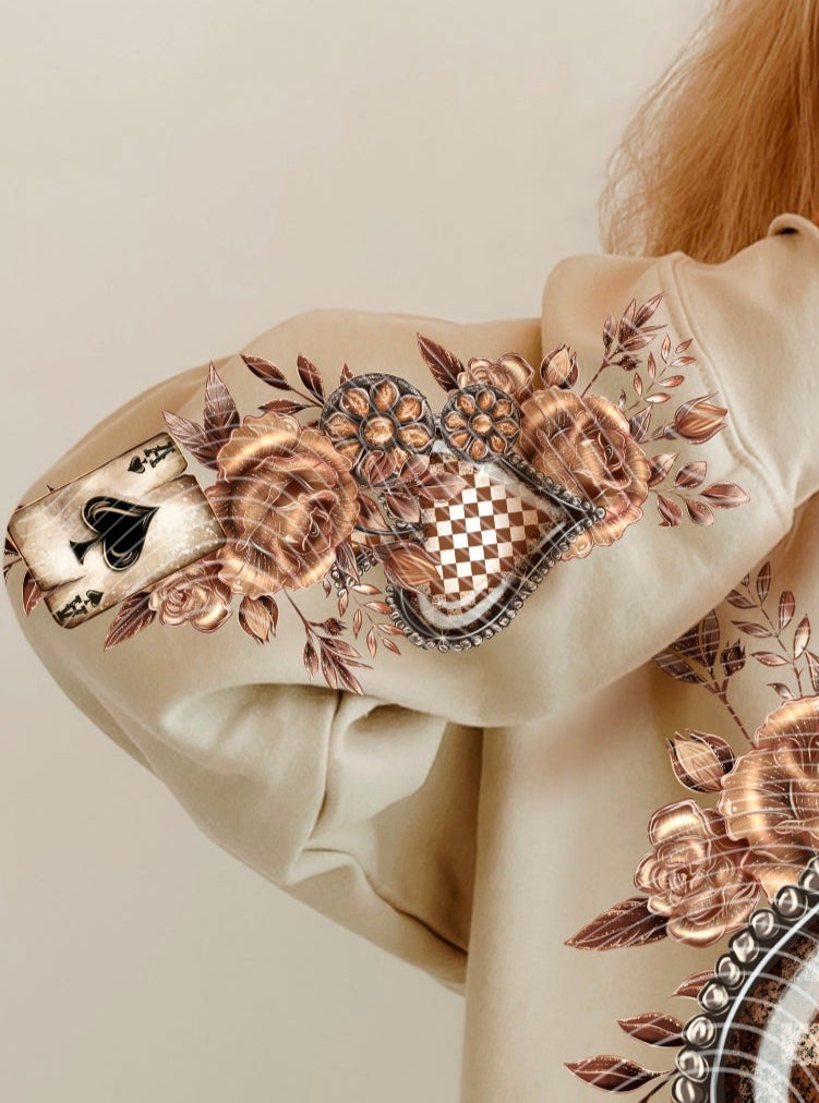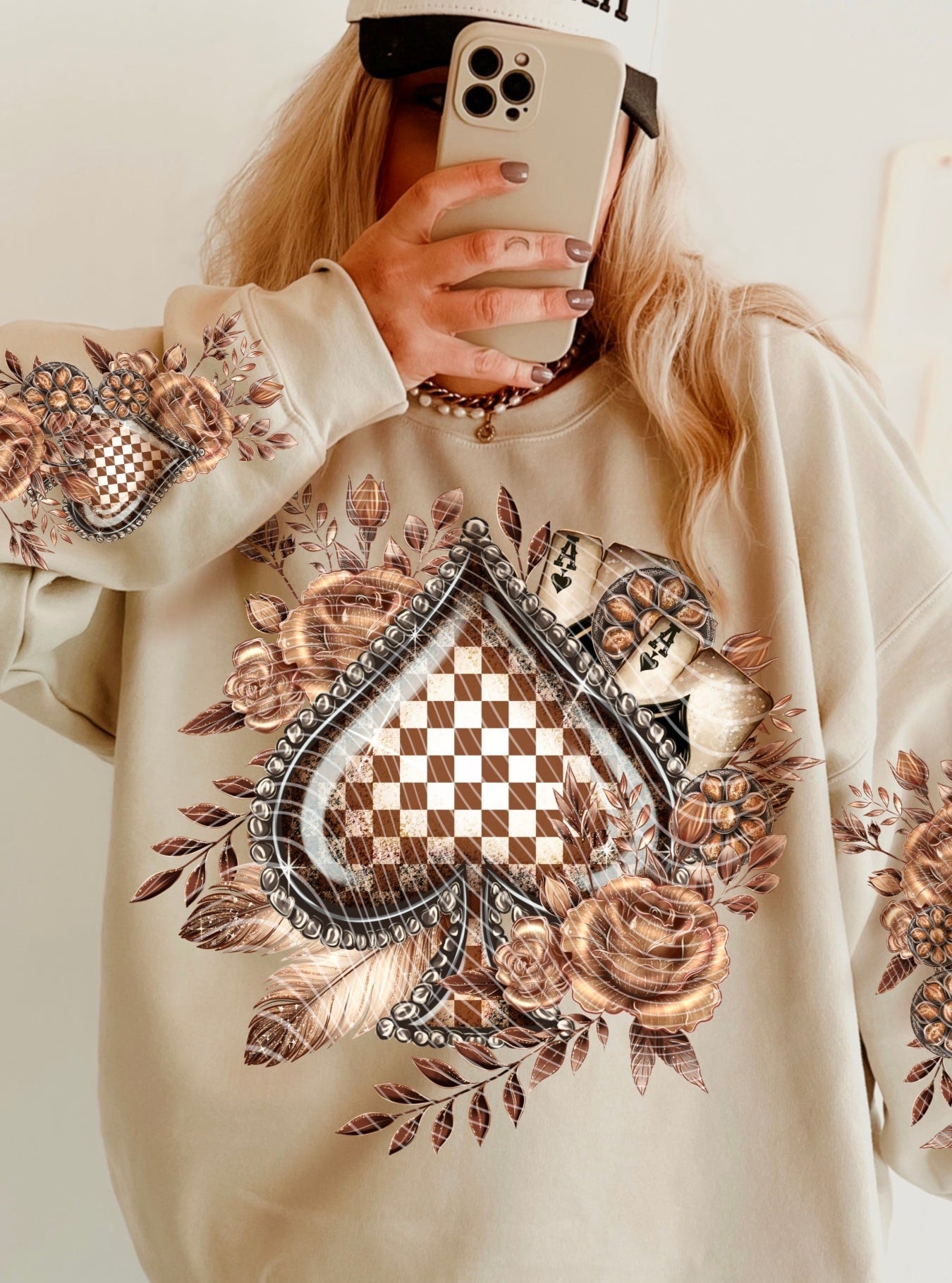 T-Shirt Sweatshirt Crewneck Hoodie Checker Spades Floral Design – Bold & Elegant