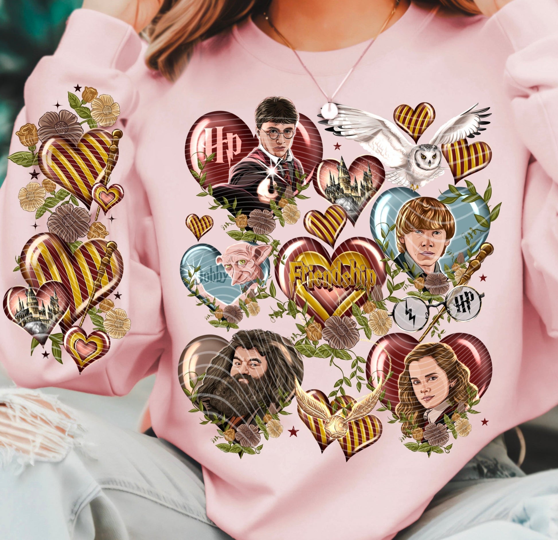 T-Shirt Sweatshirt Crewneck Hoodie H P Inspired Hearts and Characters Design .