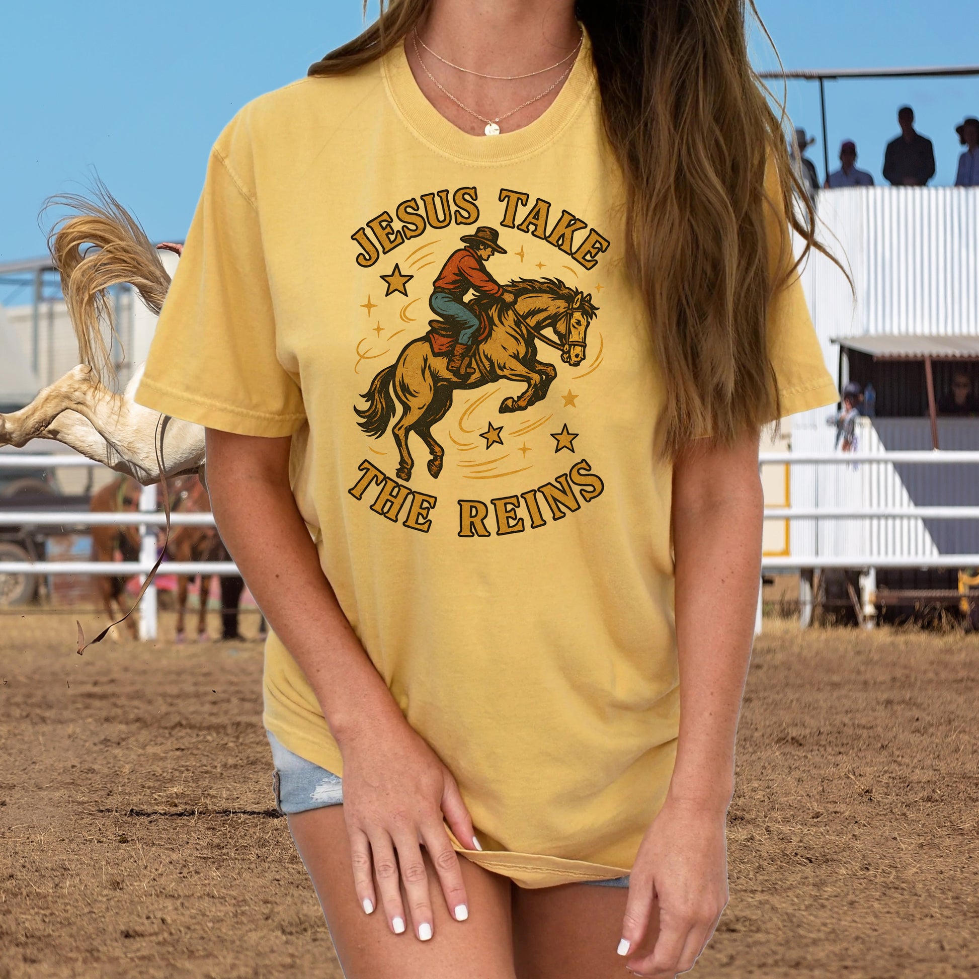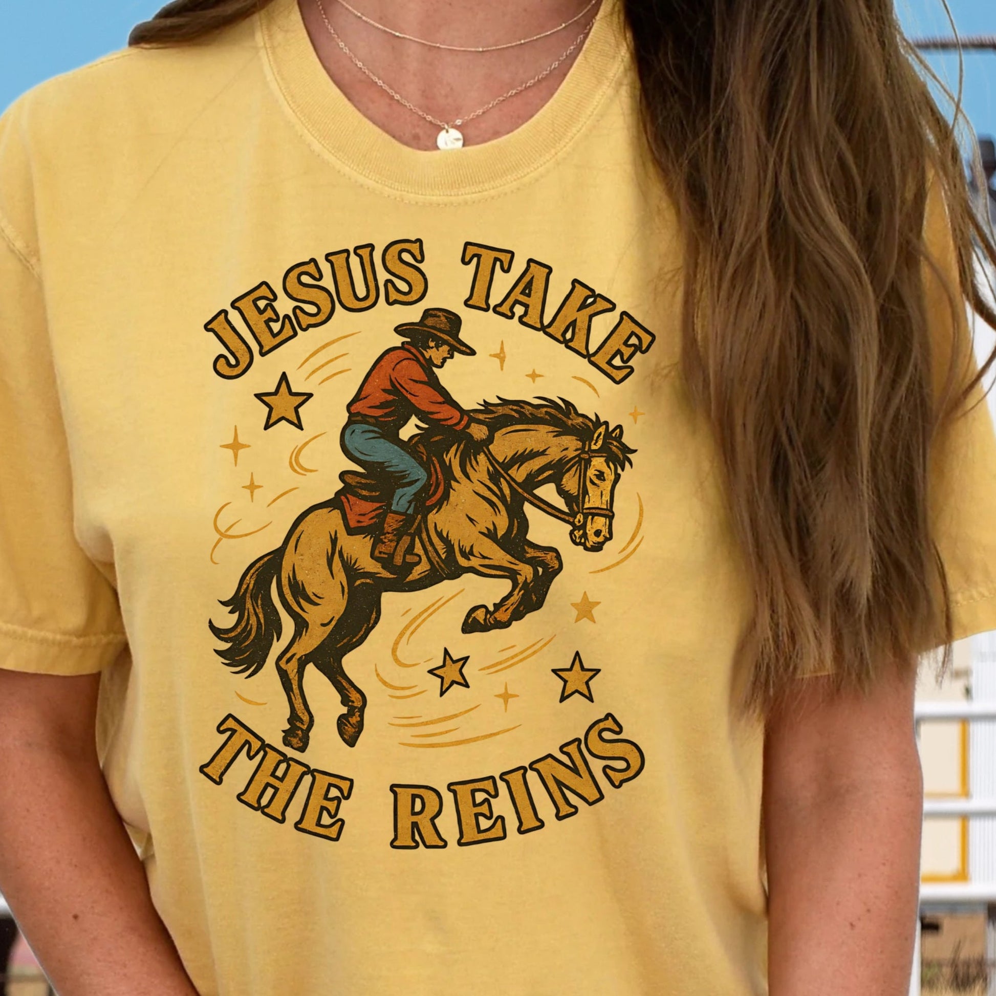 T-Shirt Sweatshirt Crewneck Jesus Take the Reins – Vintage Western Cowboy & Horse Faith-Inspired Design