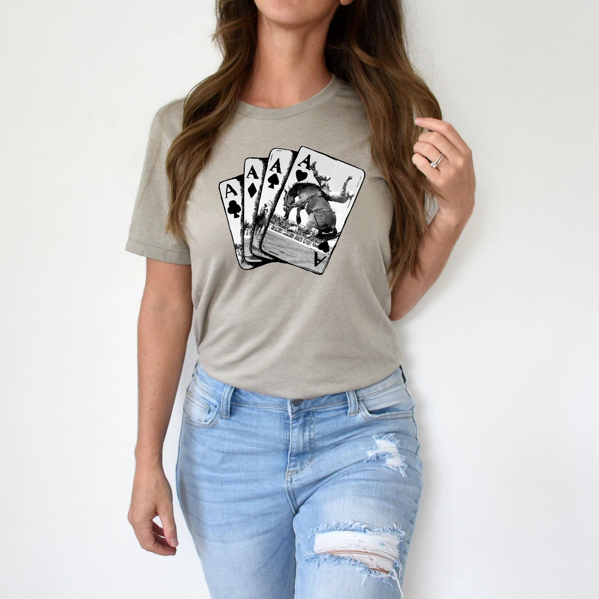 T-Shirt Sweatshirt Crewneck Rodeo Aces – Cowboy Bull Riding Playing Card Design