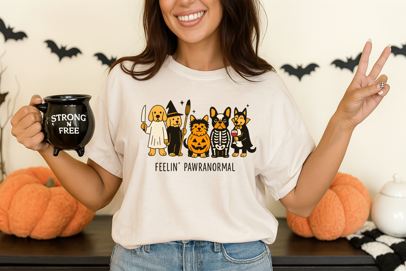 Get ready to embrace the spooky season with our adorable "Feelin’ Pawranormal" T-Shirt Sweatshirt! Made from super comfy, high-quality fabric, this cozy piece is perfect for those casual outings or just lounging around at home. With its cute Halloween dog design, it’s sure to bring a smile to your face and maybe even a few chuckles from friends! Whether you're out trick-or-treating or enjoying a cozy night in, this sweatshirt will keep you comfy and stylish. So why not add a little paw-sitive energy to your wardrobe this Halloween? Your new favorite sweatshirt is just a click away!
