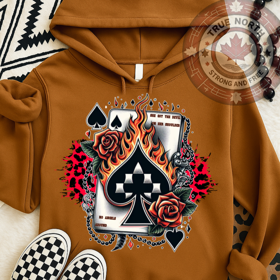 T-Shirt Sweatshirt Flaming Ace of Spades – Tattoo Rose & Leopard Print Card Design