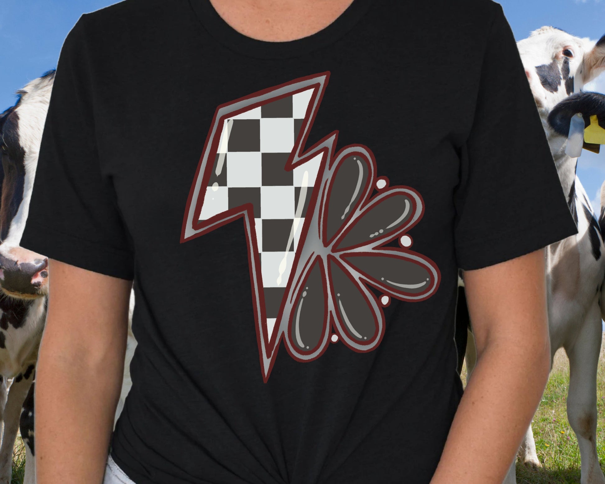 Stay cozy and stylish with our versatile T-shirt, sweatshirt, or hoodie featuring a unique checkered lightning bolt and western floral design. Crafted from high-quality fabric, these garments are designed to provide comfort and ease of movement, making them perfect for any activity. Choose from four classic styles to elevate your wardrobe. Whether you’re dressing up for a casual outing or relaxing at home, the soft texture and breathable material ensure a pleasant wearing experience. The eye-catching design seamlessly blends bold patterns with a touch of western flair, offering a distinctive look that stands out. Perfect for layering or wearing on its own, this collection is ideal for those who appreciate both fashion and functionality.