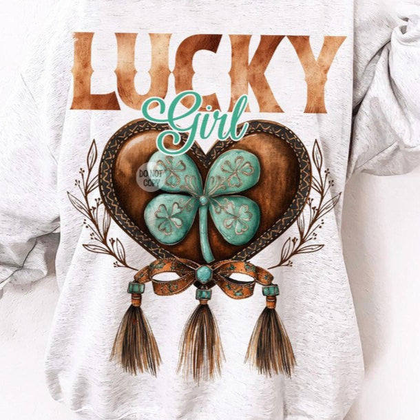 T-Shirt Sweatshirt Hoodie Lucky Girl Western Turquoise & Leather Design Crewneck