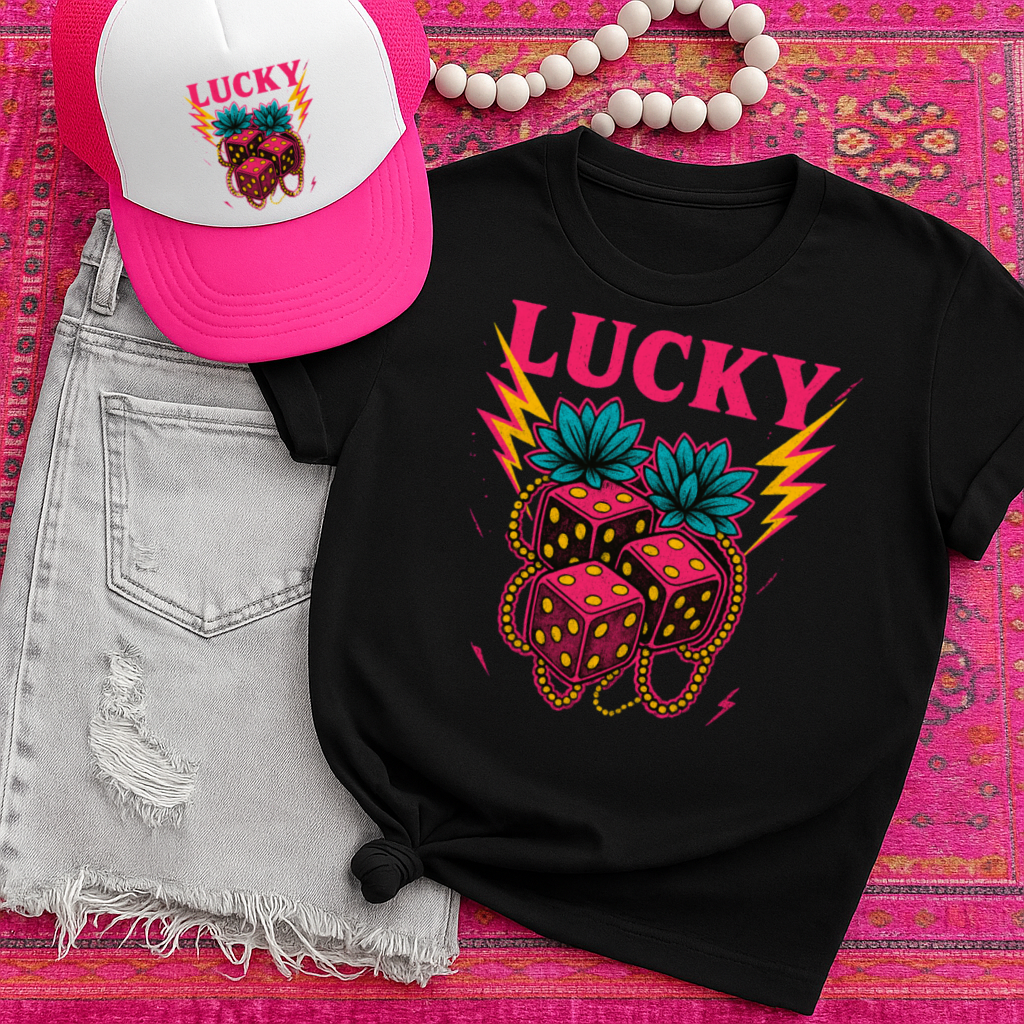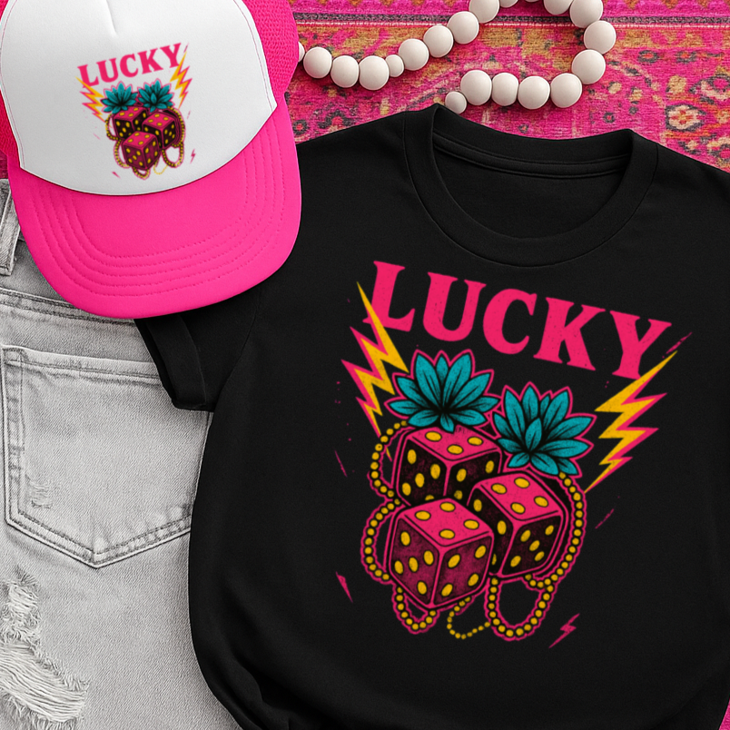 T-Shirt Sweatshirt Lucky Dice – Neon Western Bold Tattoo Style