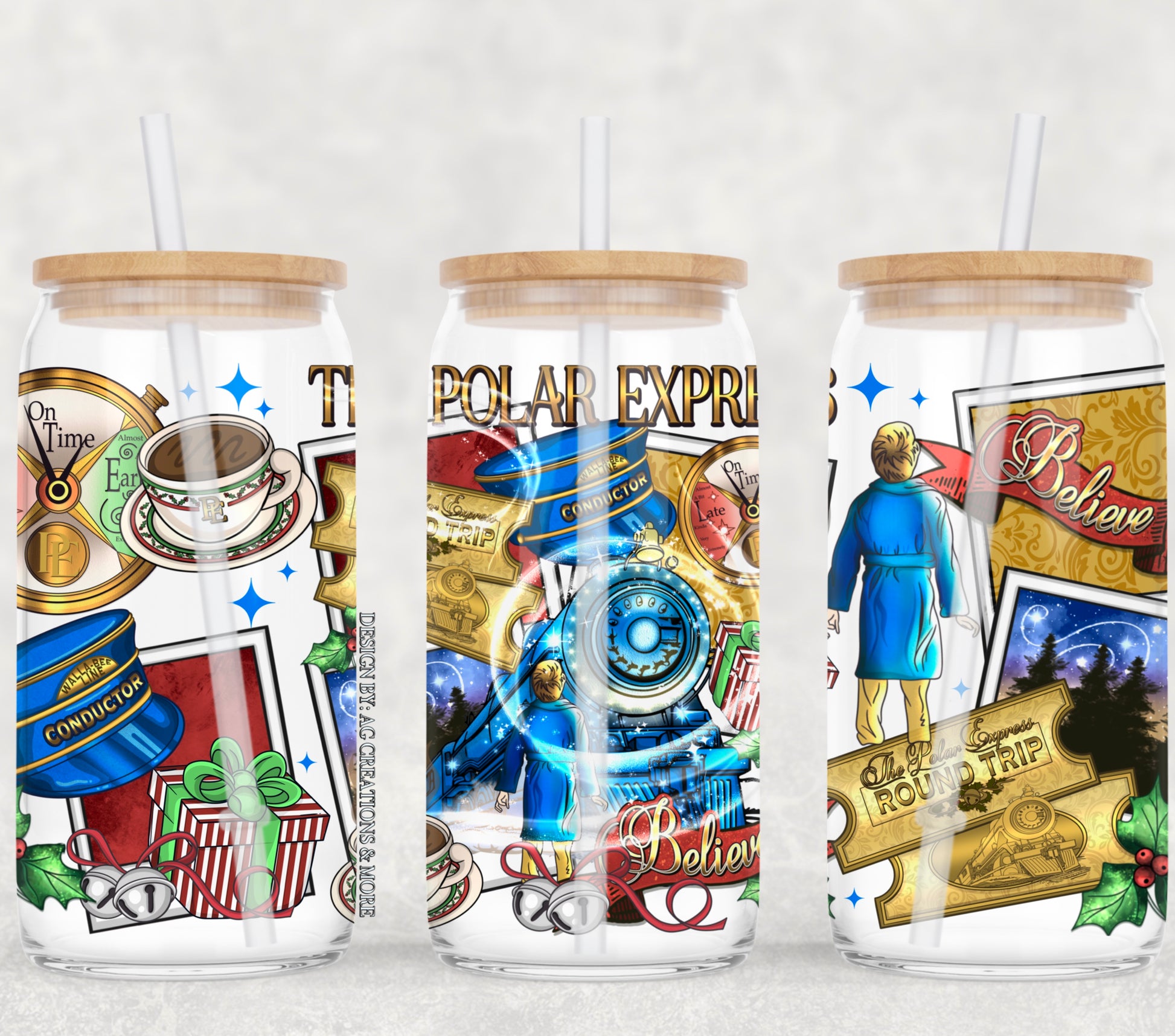 UV DTF Cup Wrap – Polar Expresss | Believe Christmas Train Ride Glass Cup Decal