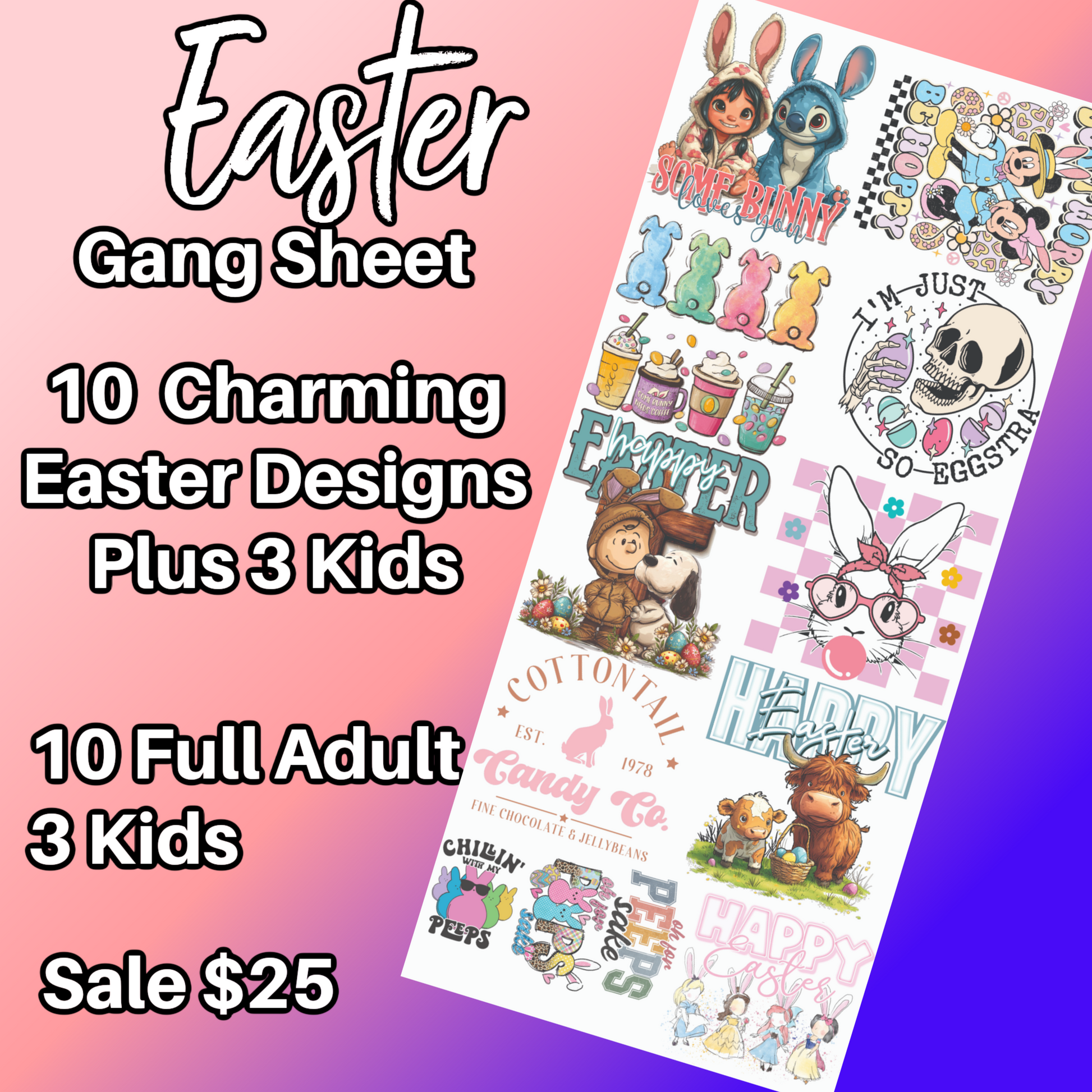 Get ready for Easter with our exclusive bundle featuring 10 full-size transfers and 3 kids' transfers! Perfect for creating fun, festive designs for all ages.